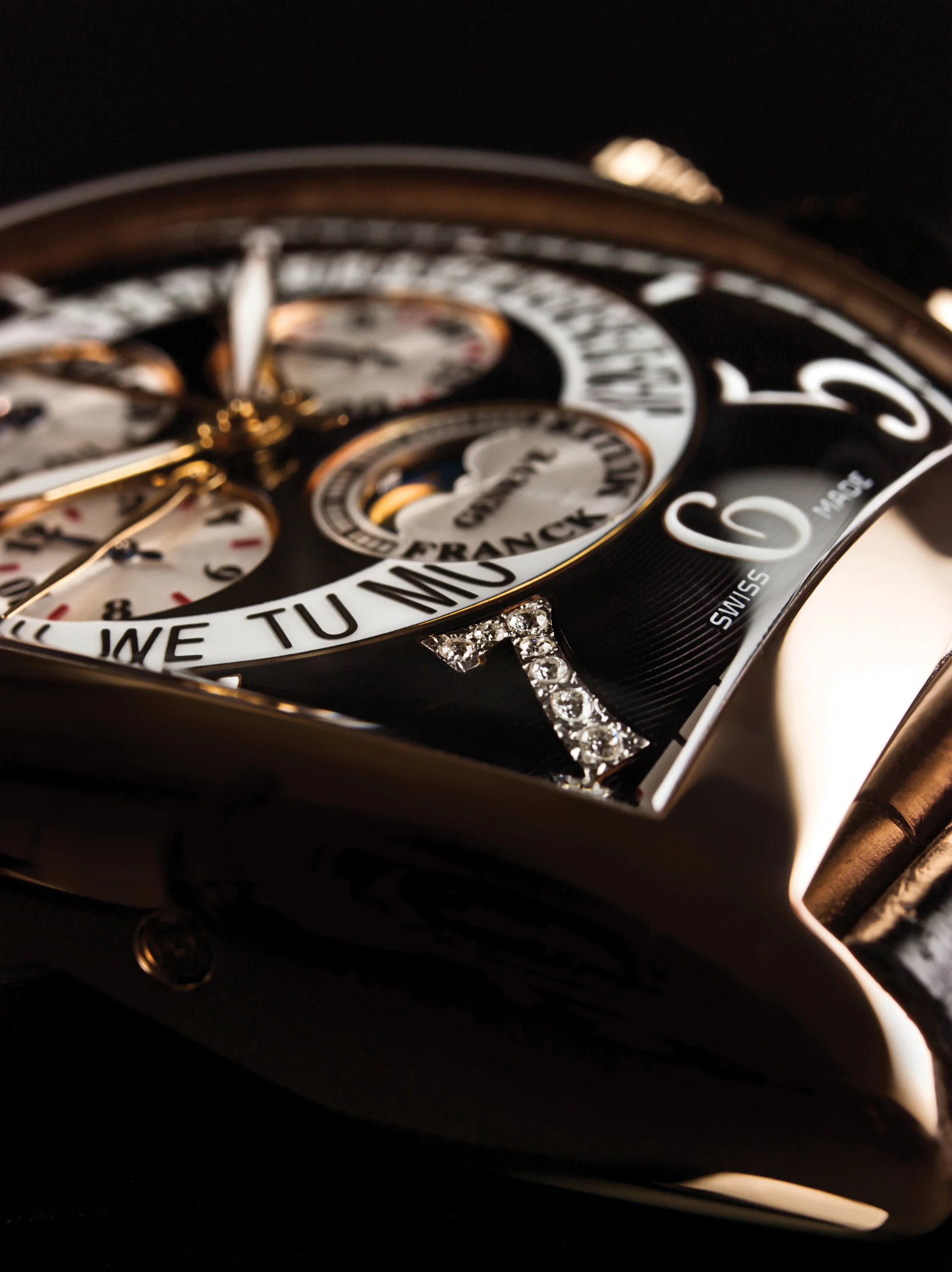 Diese limitierte Edition, die eine Allianz zwischen solider Ästhetik und makelloser Präzision hervorruft, findet ihren Ausdruck in einem überdimensionalen Signature Cintrée Curvex™-Gehäuse. Mit ihrer faszinierenden Mechanik und fehlerlosen Finesse folgt diese Uhr den Regeln der feinen Uhrmacherkunst. Das Modell mit selbstaufziehendem mechanischem Uhrwerk hat eine doppelt retrograde Anzeige mit rückspringenden Zeigern für Wochentag und das Datum. Darüber hinaus verfügt es über einen Chronographen mit 30-Minuten- und 12-Stunden-Zähler sowie eine Mondphasenanzeige. Die mit Diamanten besetzte Ziffer „7“ sorgt für den passenden „Bling“-Effekt in Verbindung mit dem schwarz lackierten Zifferblatt. Das 18 Karat Goldgehäuse trägt eine spezielle Gravur mit der Silhouette des Spielers und seiner Unterschrift auf der Rückseite. Die nur sieben opulent ausgestatteten Uhren dieser Edition wurden bereits an private Sammler zu einem nicht genannten Preis verkauft.