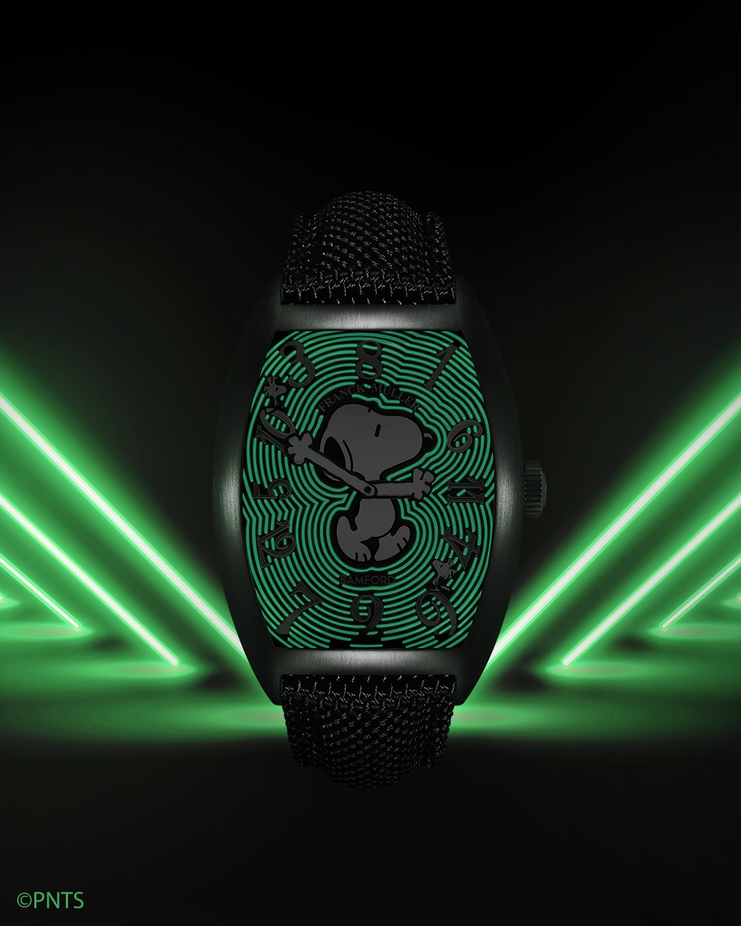 “Working on the Franck Muller Crazy Hours watch has been so much fun. I cannot stop smiling when I look at this watch as there are so many cool elements to it. Adding Snoopy to this crazy dial and using his arms to point to the numerals is amazing. I love using the iconic concentric circular pattern around Snoopy, and what takes this watch to the next level is the luminous effect used on the dial. I also love having Woodstock in wonderful places throughout this piece. It really is a culmination of so many things I adore. ” George Bamford, Bamford Watch Department.