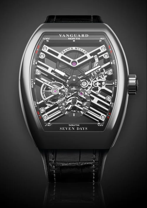 Часы полностью разработаны и изготовлены на собственном производстве компании. Сбалансированный дизайн механизма Vanguard 7 Days Power Reserve Skeleton воплощает любовь Franck Muller к ручной отделке.