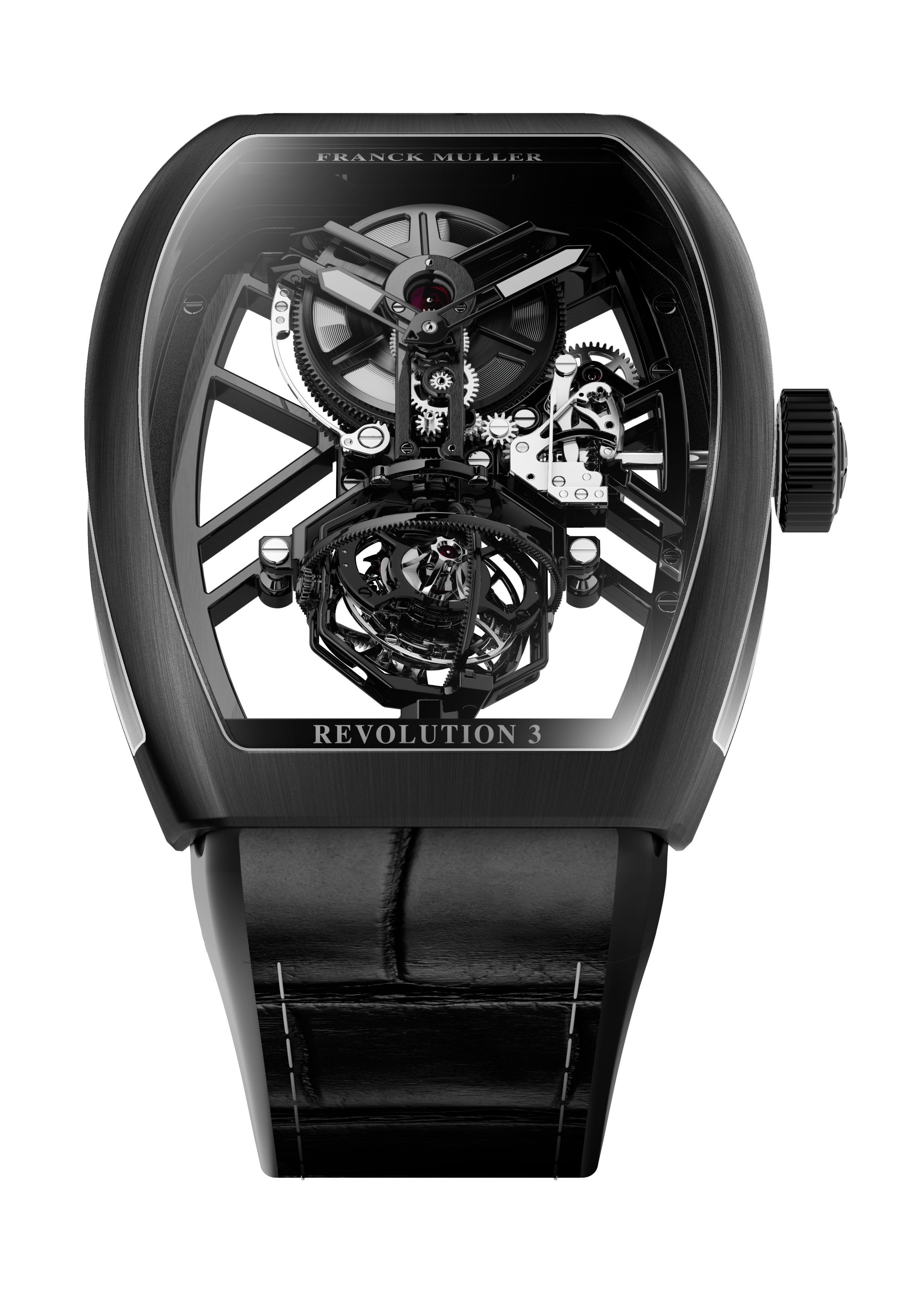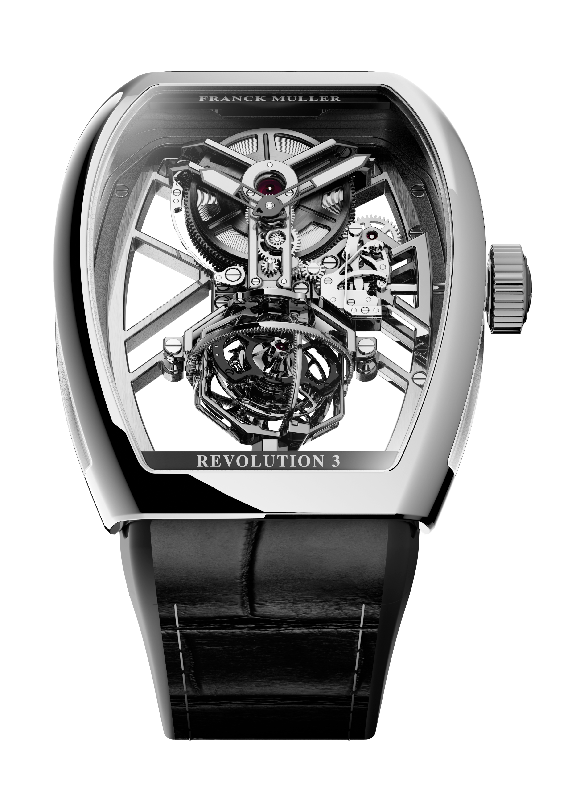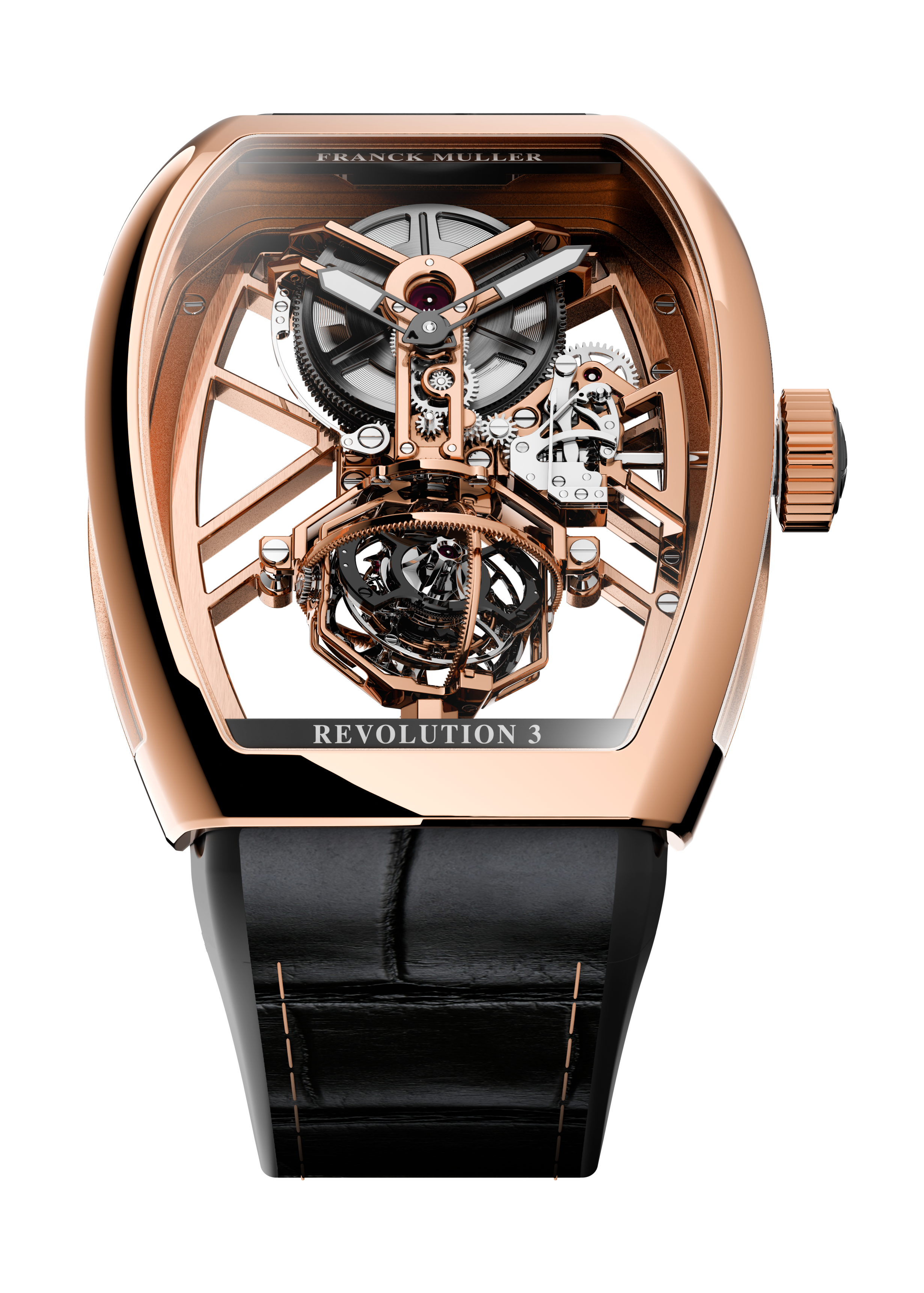 Franck Muller presents the Vanguard Aero Revolution 3 Skeleton and highlights a new interpretation of its expertise in watchmaking complications. Limited exclusively to 8 pieces only, this masterpiece follows in the lineage of the manufacture’s most technical creations and offers an open view of the world’s very first tri-axial tourbillon, where the design of the case and the movement are closely intertwined to showcase the mechanics, with the case acting as a true frame around the movement.